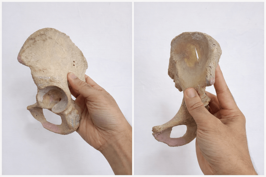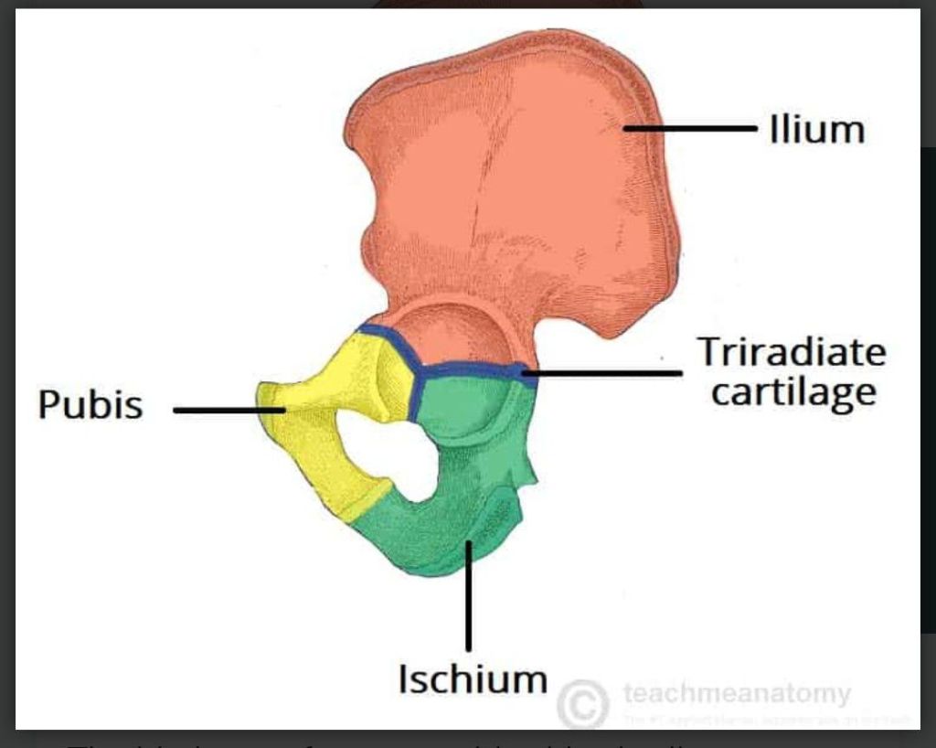 Another wonderful thing about the hip bone is that all three bones unite at the acetabulum (the cup of the hip joint), they come together in a ‘T’ shaped “triradiate cartilage”. This cartilaginous union of the bones allow the hip and pelvis to grow in size as the child grows and finally fuse once the child stops growing (after adolescence).